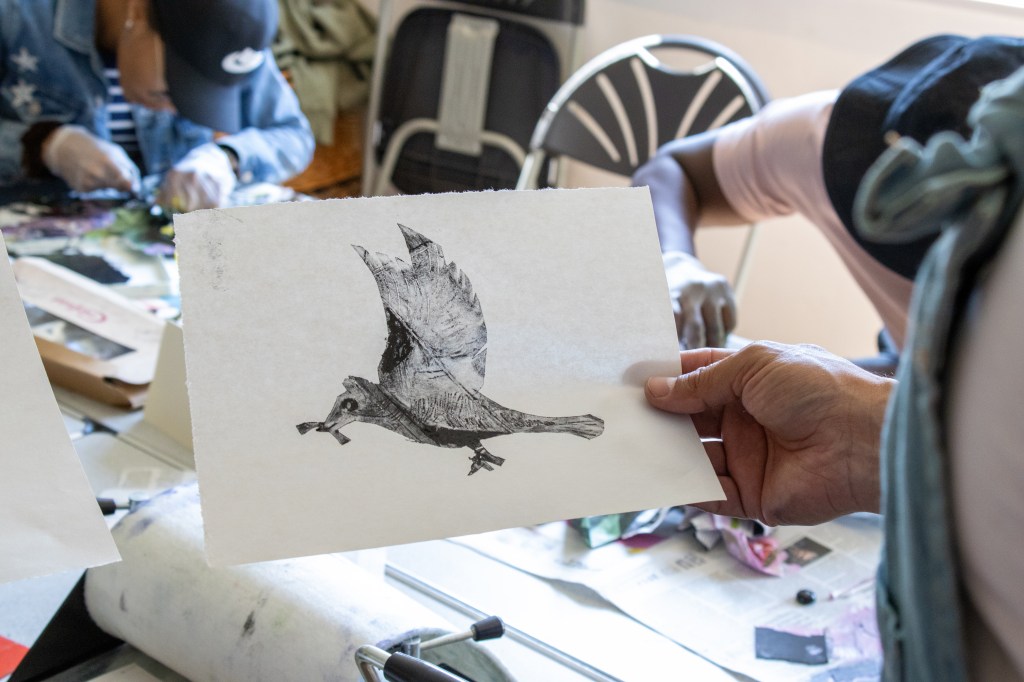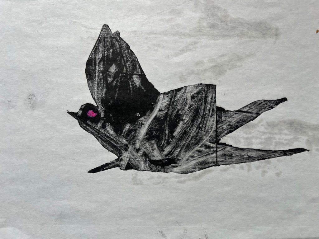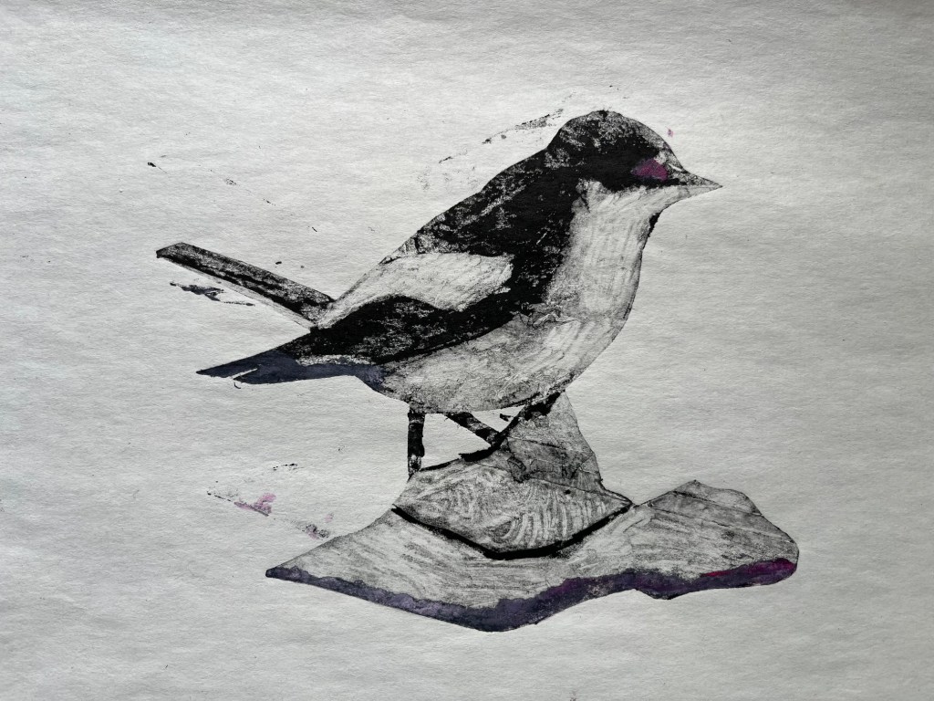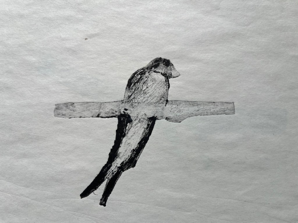 Nightjars are nocturnal birds and can be seen hunting for food at dusk and dawn. They have pointed wings and long tails, similar to the Kestrel. Most come to the UK in April – May time from the scrub grasslands of the Democratic Republic of Congo, covering a distance of approximately 6,500km. They stay in the UK until September the autumn when the weather begins to turn. Check out our last blog post ‘Session 1: Cyanotypes and Tetra-Pak Printmaking‘ to hear Jon reading an excerpt about Nightjars and their associated folklore.